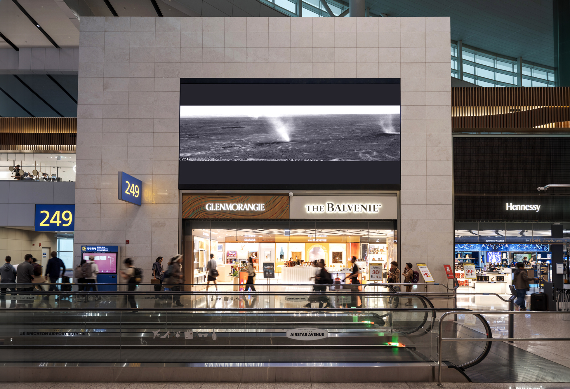Installation view at “Ghost Out Of The Machine” exhibition, Incheon International Airport Media Walls (Terminal 2)